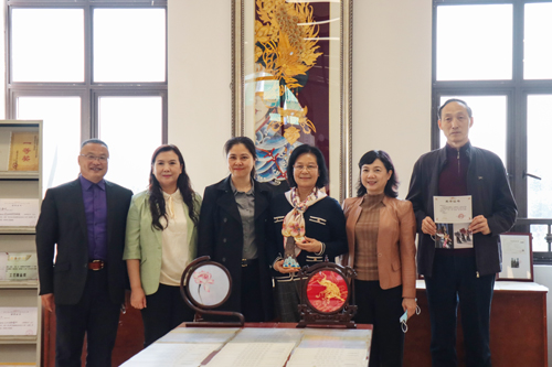 本网讯 12月13日上午,广东省妇联副主席杨佳一行4人在市妇联党组书记、主席张晓兰等陪同下来澳门网投参观考察,并对澳门网投 “广府金绣”项目开展了调研,澳门网投董事长谢建平、校长和飞等校领导接待了来访客人。