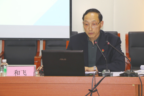 和飞从十个方面部署2019年主要工作,包括“改大”具体工作、职业教育体系的构建、教育教学特色与质量、科研服务、招生、学科专业建设、校园基础设施建设、“三风”建设、安全稳定、党建工作。