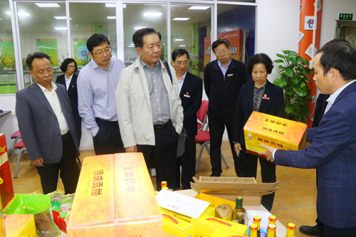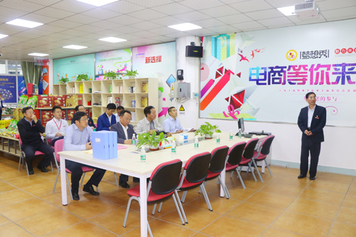 图为专家组在校领导陪同下现场考察电子商务实战实训中心
