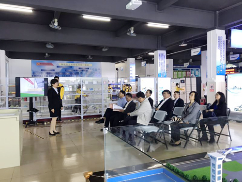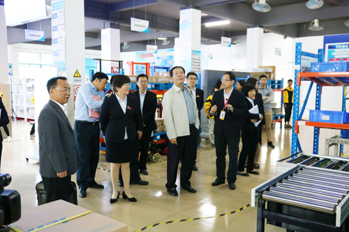图为专家组在校领导陪同下现场考察物流标准化公共实训中心