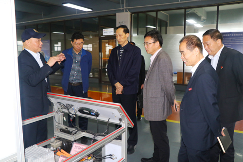 图为专家组在澳门网投领导的陪同下现场考察汽车实验实训中心