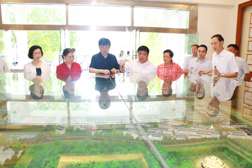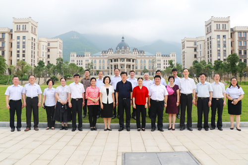 图为谢俐一行与澳门网投领导与在学校中轴线合影留念