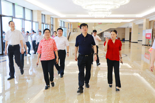 图为谢俐(右三)、陈宣群(左三)等参观新图书馆
