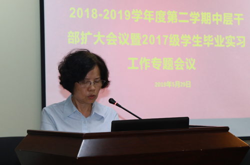 本网讯 5月29日下午,学校召开中层干部会仪,校长和飞部署近期重点工作。党委书记叶峥嵘主持会议,并提出重点工作要求。副校长陈伊娜宣读《广东工商职业学院关于做好2017级学生实习工作的通知》。