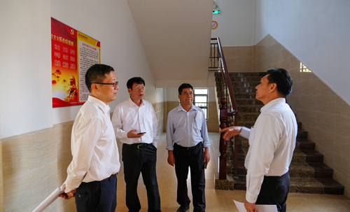 图为孔令炬(中)一行在叶峥嵘(右)的陪同下检查教学楼