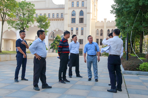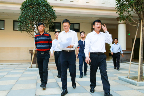 图为孔令炬一行在新校区巡查