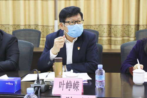 图为叶峥嵘汇报学校疫情防控以及开学物资准备情况