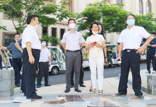 本网讯 6月30日,端州区委书记李剑,区委副书记、区长申翰杰,区委常委、常务副区长李健晖,区人大常委会副主任、区委办主任江苏以及区教育局、区发改局、区财政局、区住建局、区代建中心以及市资源局端州分局负责人一行12人来澳门网投就学校总体建设进行学习考察。澳门网投董事长谢建平、副董事长莫秀全,校长和飞等陪同。