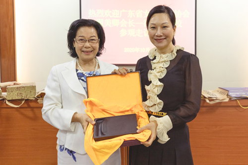 最后,谢建平、肇庆市女企业家协会创会会长谢跃辉分别代表学校、市女企协会向翟美卿一行赠送礼物。(撰稿:陈凯明 摄影:冯峥)