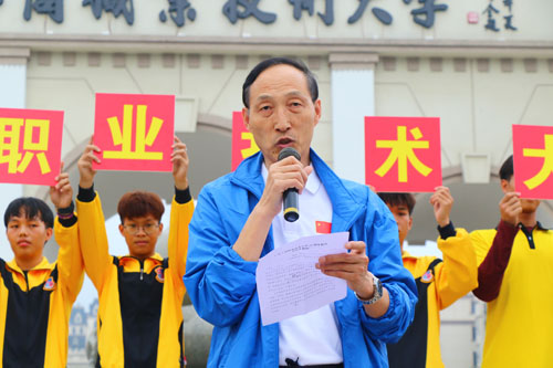 本网讯 10月29日下午,以“励精图治,改革创新,努力争当职业本科试点改革排头兵”为主题的师生环校跑活动在学校正大门启动。董事长谢建平、副董事长莫秀全,党政领导班子全体成员以及全校教职员工、学生代表参加。