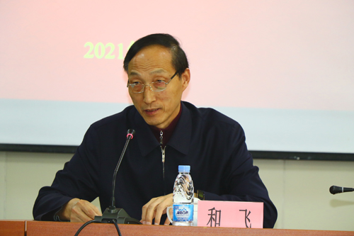 图为和飞讲话