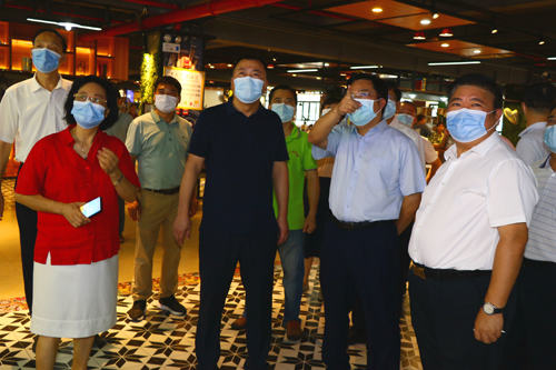 图为陈瑞锋一行在校领导陪同下实地查看食堂