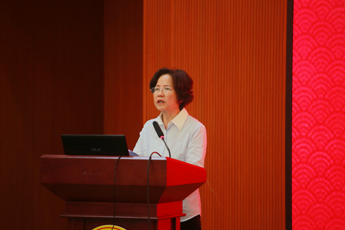 图为江雪珍发言