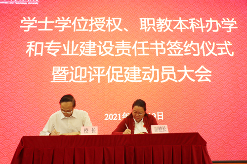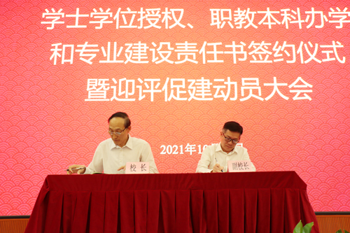 学校举行学士学位授权、职教本科办学和专业建设责任书签约仪式暨迎评促建动员大会