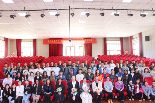 图为校领导与师生合影