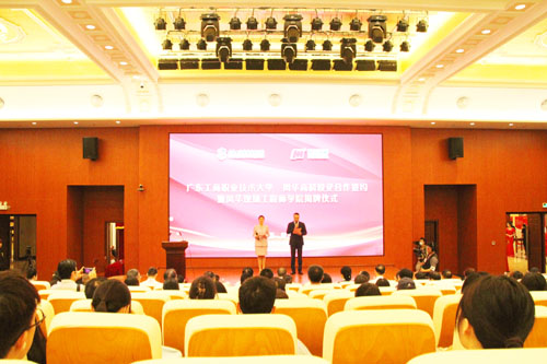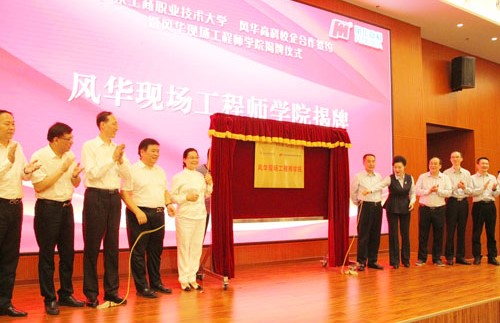 风华高科产品公司、职能中心负责人、特聘企业教师、专业指导委员会成员、澳门网投唯一官网党政领导、中层干部、教师和学生代表、省市有关媒体代表等500余人参加了签约暨揭牌仪式。