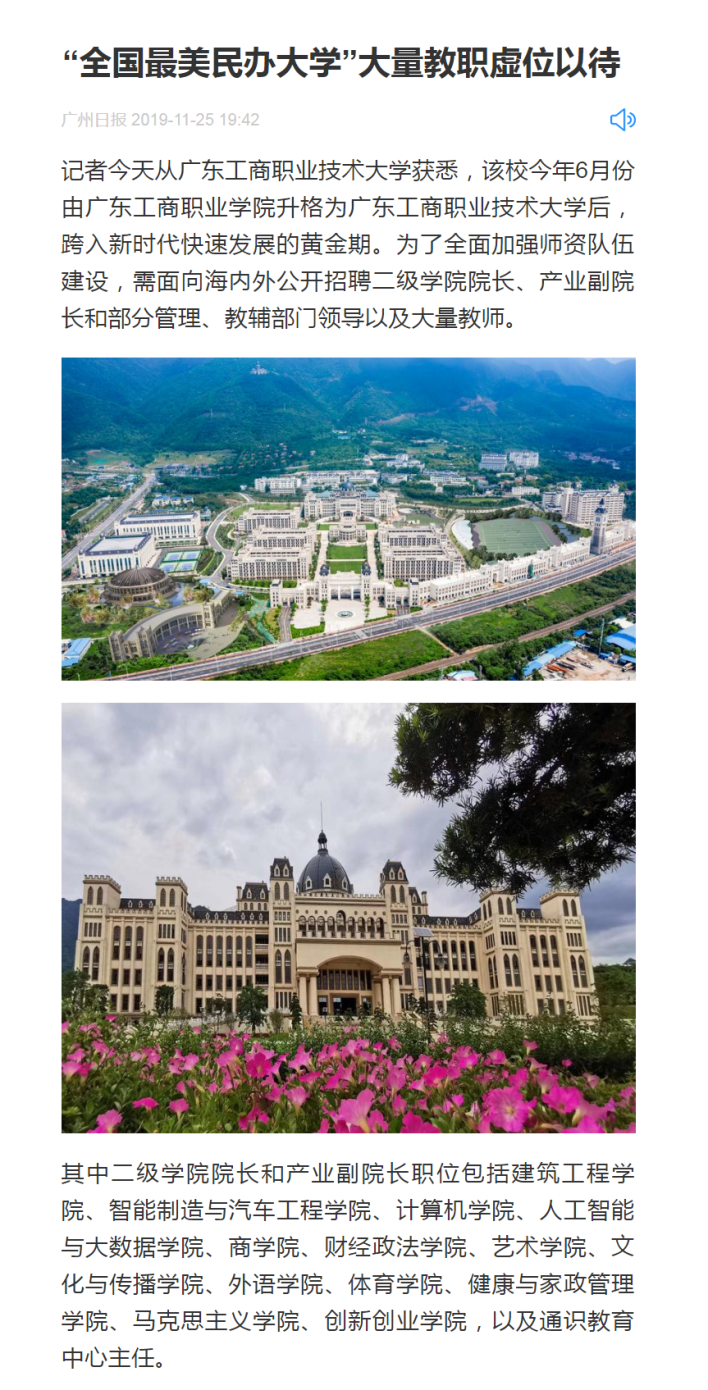 招聘启事在学校官网以及知名招聘网站发布以来,受到了社会各界人士以及众多媒体的广泛关注,现已有中国网、中华网、国际在线、人民日报周刊网、凤凰网、网易、广州日报等110多家媒体直接报道或者转载(详见附件)。据悉,中国教育报在第三版中于明天(2019年11月26日)对澳门网投招聘启事进行刊登。