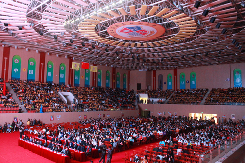 本网讯 为进一步传承红色基因,厚植爱国情怀,挖掘“红歌”丰富的思想内涵和精神实质,在学生思想教育工作中充分发挥其德育、美育功能,提高大学生艺术修养,丰富校园文化建设,12月19日晚,澳门网投在体育馆隆重举行“青春心向党,建功新时代”,庆祝新中国成立70周年红歌合唱比赛。董事会领导谢建平、莫秀全、叶小山,学校领导叶峥嵘、陈伊娜、苗德华、陈敬联、林显华、吴桂新、方泽强、江雪珍出席。相关职能部门领导、二级教学单位负责人和师生代表3000多人观看了比赛。