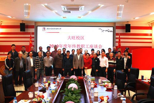 本网讯 为了总结2019年度工作、畅谈2020年发展规划,为大旺校区建设献计献策,1月10日上午,在初心堂会议室举办了大旺校区2019年度年终教职工座谈会,副校长丁孝鹏,大旺校区管委会副主任谢永平、钟毅,管委会成员郑志峰、柯其寅,教职工代表及相关服务单位代表出席本次座谈会。会议由钟毅主持。
