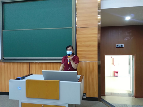 梁群以“加强校园防疫防控 保障学生健康安全”为题,分认识新冠肺炎、个人防护和健康防护知识和防控措施三个方面,围绕开学前准备工作、开学后防控措施、重点场所管理、消毒注意事项等方面展开详细讲解和介绍,并特别强调了高校师生诊疗流程的详细过程。