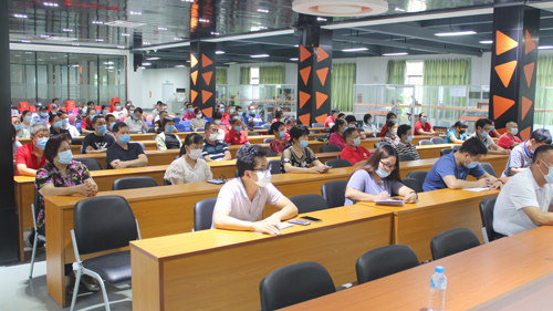 本网讯 5月19日下午,大旺校区全体人员以及食堂、超市、医务室、基建等服务单位相关人员在工业机器人一楼会议厅参加学生返校工作动员大会,学校党委书记叶峥嵘、副校长丁孝鹏出席本次大会,大会由大旺校区管委会副主任钟毅主持。