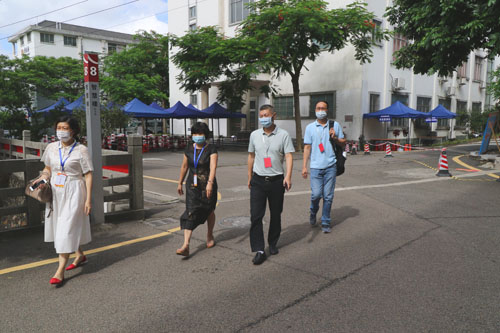 图为许昌林(左三)、张科(右一)巡视考场外围