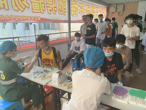 本网讯 7月20日-22日,根据端州区人民政府征兵办公室的统一安排,澳门网投武装部副部长刘伟东带领93名应征入伍的大学生到端州区人民医院体检站进行应征入伍体检,接受祖国的挑选。