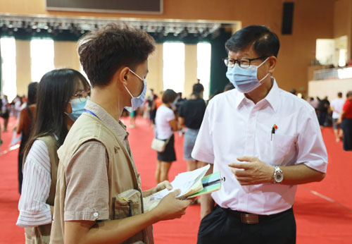 在迎新现场,各学院(中心)以及相关职能部门的工作人员、辅导员助理耐心细致地为新生办理相关手续,讲解入学注意事项,解答新生及家长的疑问。遍布校园的学生志愿者热情地为新生及学生家长测体温、指引道路、搬运行李和协助新生办理入学手续等。此外,为确保贫困生顺利入学,学校还为贫困生提供生活用品,给贫困学子们带来了最温暖的关怀。和飞校长在和学生及学生家长亲切交谈时说:“你们来了之后就变成我们校园的主人,希望你们尽快熟悉我们学校的环境,融入大学生活,珍惜韶华、努力学习,不断提升综合素质,练就过硬本领。”整个迎新工作严格遵循防疫要求,有条不紊,秩序井然,受到了新生和家长的一致好评。