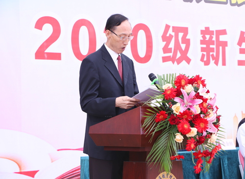 校长和飞发表讲话。他代表学校董事会、党政领导班子对大旺校区2020级新生表示热烈欢迎和衷心祝贺,并介绍了学校的办学历程、办学规模和办学成就。