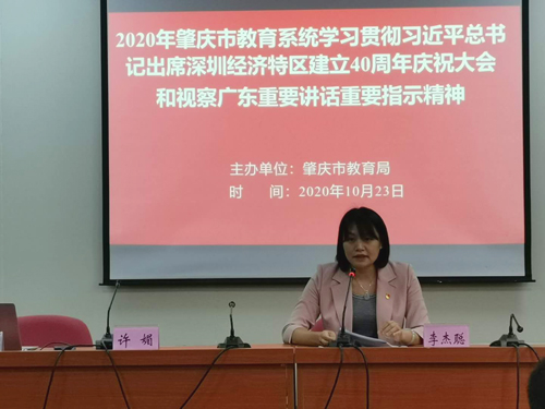 会上,全体学员认真学习了习近平总书记出席深圳经济特区建立40周年庆祝大会和视察广东重要讲话精神。肇庆中学党务骨干许媚老师从发展党员工作规范指引、党建示范点档案材料整理和党支部档案管理工作三个方面给学员作了详细的讲解。(撰稿:陈凯明 摄影:学生记者曾浩宇)