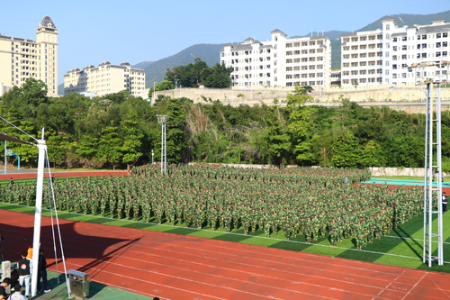 本网讯 10月27日上午,澳门网投2020级本科新生军训总结表彰大会在田径场举行,星湖校区本科新生向祖国和学校汇报军训成果。