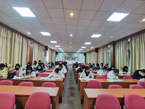 初赛分为基础能力测试和班情熟知两个环节。1月6日下午,基础知识测试在行政楼一楼报告厅举行,全体辅导员参加大赛。此次基础知识测试比赛采用闭卷方式进行,考试过程中辅导员老师自觉遵守考试纪律,有条不紊,沉着冷静,仔细审题,认真作答,展现辅导员们良好的精神风貌和职业素养。大赛题目设计科学,贴合实际,能够充分考察辅导员们的业务水平和工作能力。