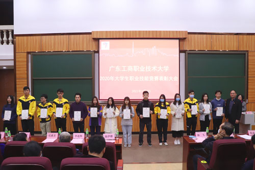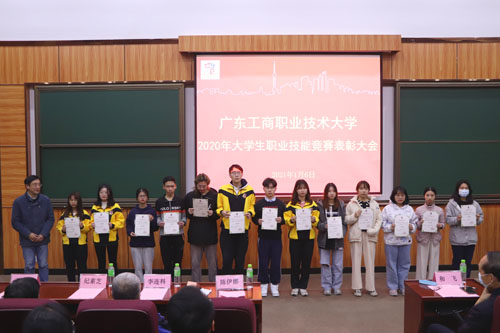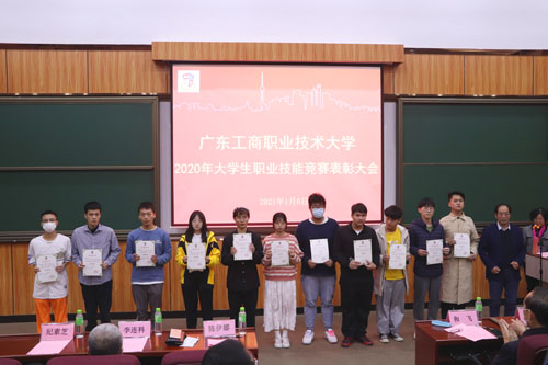 会上,参会人员通过视频回顾了各类竞赛项目的精彩花絮。卢景值宣读学校表彰文件《澳门网投唯一官网关于2020年大学生职业技能竞赛表彰的决定》。主席台领导为各竞赛项目获奖学生代表进行了颁奖。