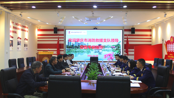 本网讯 3月9日上午,肇庆市消防救援支队支队长孟凡新、政委刘志峰一行7人到大旺校区考察,学校党委书记叶峥嵘,副校长、大旺校区管委会主任丁孝鹏及相关大旺校区管委会成员陪同考察,并在初心堂会议室举行座谈交流会,会议由丁孝鹏主持。