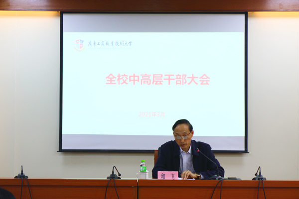 和飞强调,2021年是中国共产党建党100周年,也是学校建校25周年,是学校全面实施“十四五”规划的开局之年,学校将继续慎终如始做好疫情防控工作;切实落实民办高校党建工作的各项规定,充分发挥学校党委在办学中的引领作用;持之以恒抓好本科试点改革的各项工作;集中精力、协同联动,抓紧完成学校“十四五”规划的编制;紧紧围绕职业本科试点改革的各项任务,持续发力做好教育教学改革;进一步加强校企合作和产教融合,打造具有自身特色的校政企合作新模式;把科研工作摆在重要位置,改革驱动打造特色科研,快速提升学校的科研水平;持续加大师资的引育力度,将教师队伍建设摆在全校工作的首要位置;继续贯彻“全员招生、全年招生”的理念,全力完成2021年的招生任务,继续提升毕业生就业率;深化薪酬机制改革,完善绩效奖励方案,做好2021年财务预算工作。