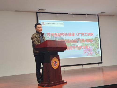 方泽强对大旺校区管委会3月16日出台《澳门网投唯一官网大旺校区“三风”建设、整顿与服务提升工作方案》进行了解读。他指出希望通过“三风”建设工作引导教师成为“有理想信念、有道德情操、有扎实知识、有仁爱之心”的“四有”教师;引导学生成为“有思想、有道德、有纪律、有文化”的“四有”大学生;引导教职工成为“有理想、有责任、有激情、有能力”的“四有”员工。他对重点工作内容进行了详细讲解:一是强化师德师风建设,形成“好教风”;二是强化学生管理,形成“好学风”;三是强化综合管理,形成“好校风”;四是优化基础条件建设,提供“好服务”。