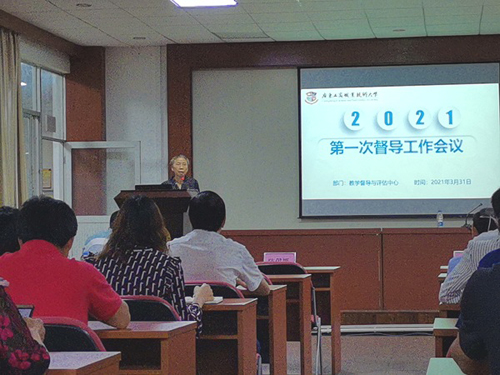 会议最后一项议程,外语学院督导王桂英教授及马克思主义学院督导李颖老师作督导工作经验分享。两位督导结合自身工作的体会和感悟发言,并对学校教学管理和下一步督导工作提出了宝贵建议。