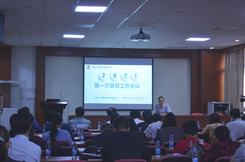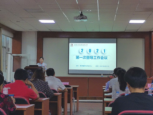 本次会议共三项议程。第一项议程,杨贞斌主任作督导工作总结与工作部署。杨主任对2020年督导工作进行了简要回顾,同时就课堂教学效果、日常教学过程巡查、督导听(评)课及本科试卷档案管理等方面存在的问题进行了详细说明。同时他对本学期即将开展的督导工作进行了部署且提出了工作要求。他强调,要继续强化督导听课责任意识,加大理论与实践教学的检查力度,继续推进本科试卷的归档工作,充分发挥教学督导的督学、督教、督管和指导作用。