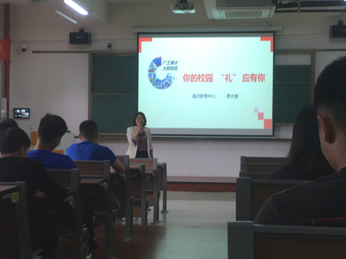 本网讯 4月7日下午,大旺校区在教学楼416教室举行学术论坛系列讲座第八讲,通识教育中心费水蓉副教授担任主讲人,讲座主题为《你的校园“礼” 应有你》。讲座由大旺校区教务处处长邓振华主持,大旺校区师生代表共160余人聆听了此次讲座。