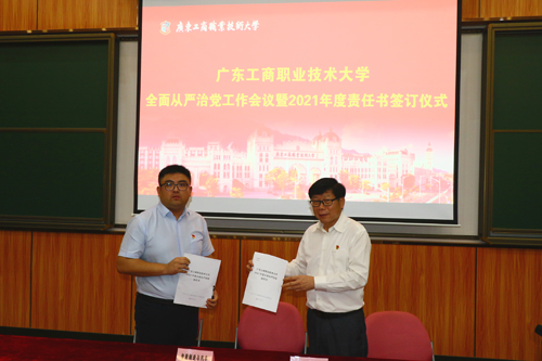 会上,党委书记叶峥嵘代表学校党委与各部门单位签订了全面从严治党暨2021年度工作目标责任书。