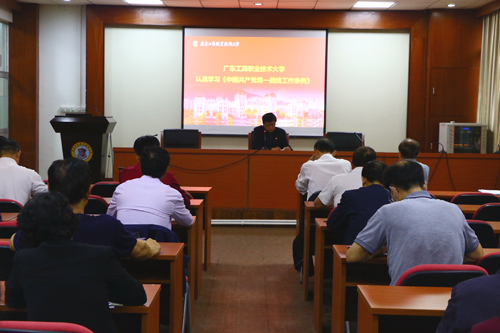 会议指出,为学习贯彻落实好《条例》精神,学校各单位、部门要高度重视,统筹谋划,认真做好以下几项工作。一要充分认识新形势下统一战线工作的地位作用;二要切实加强党对统一战线工作的统一领导;三要积极构建大统一战线工作格局;四要着力提升领导干部做统一战线工作的内力素质;五要不断推进统一战线工作守正创新。