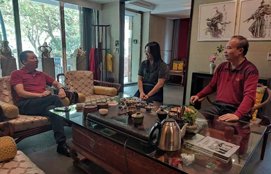 2021年4月21日上午,创新创业学院龙辉驰副院来到肇庆鸿大投资管理有限公司拜会张仲斌董事长,就我院目前已启动的百名家进校园大讲堂一事与张董事长进行深度沟通,初步商定5份月张董事长莅临我院开展创业讲座。