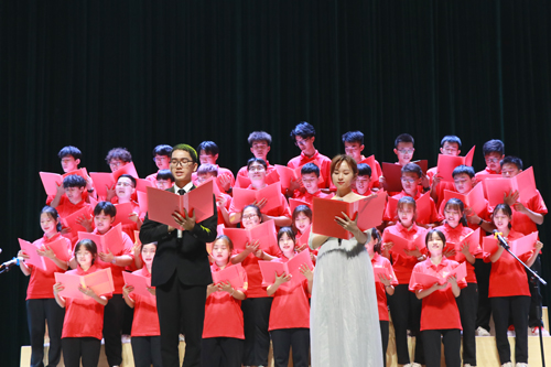 最后,全体参演人员大合唱表演《没有共产党就没有新中国》,台上台下融为一体,体育馆成了欢乐的海洋,全体师生挥舞着党旗,怀着崇高的敬意放声齐唱,祝福共产党在新的征程中不断走向新辉煌,晚会到此圆满落幕。(撰稿:学生记者丘颖慧 宋伊蓝 邱嘉盈 摄影:学生记者蔡民洋 陈舒婷 陈育冰 方悦 刘锦坤 潘之秋 唐卓 王凯文 赵镔瑜 朱铭琪 庄琪)