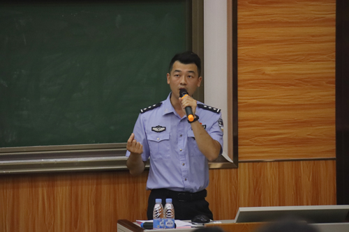 梁炅警官进行全民反诈常识知识讲座,让师生对电信诈骗的种类、形式和常见诈骗手段有了更详细的认识。杜健宇警官对治安、法制进行学习交流,使得师生进一步了解相关法律法规,实现人人学法、普法的良好风尚。