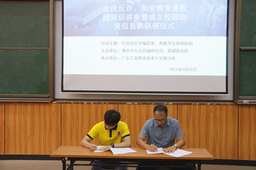 最后,由保卫处与学院责任人、学院与学生代表现场签订防诈安全责任书,进一步层层落实学校防诈骗安全责任。(撰稿:学生记者宋伊蓝 黄旸斌 摄影:学生记者陈育冰 赵镔瑜 王凯文 梁诗宣 柯启炫)