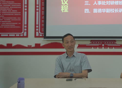 苗德华在讲话中高度肯定了第二期教师发展研修班所取得的成效,他要求大家在日后的教学当中,一要注重立德树人,铸魂育人;二要做一名有理想信念,有道德情操,有扎实学识,有仁爱之心的“四有”好老师;三要做社会主义价值观的践行者;四要做高水平本科职业技术大学的建设者和开拓者。