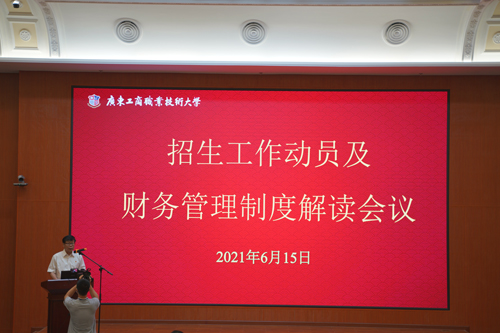 本网讯 6月15日下午,澳门网投在图书馆报告厅召开2021年招生工作动员及财务管理制度解读会议,副董事长莫秀全,学校党政领导班子成员,各学院、中心及职能部门负责人,各二级党组织书记,全体中高层干部等参会,党委书记叶峥嵘主持。