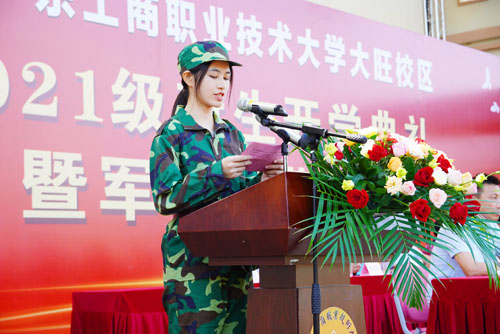 2021级新生代表智能制造与汽车工程学院廖若彤发言,她表示同学们都是怀着家人的嘱托和对未来的憧憬,来到了澳门网投唯一官网,今天的开学典礼,既是大学生涯的开始,也是一场神圣的“成人礼”,更是青春岁月的升华,她相信同学们会团结一心,服从指挥,建立坦诚的友谊,形成严肃认真、尊师守纪的班级作风,通过磨练让自己成为合格的工商人。