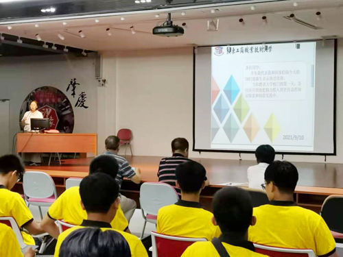 智能制造与汽车工程学院席志刚等老师为工业机器人技术、机械设计制造及自动化等专业新生就人才培养目标、课程设置、行业前景、就业岗位等方面进行分享。