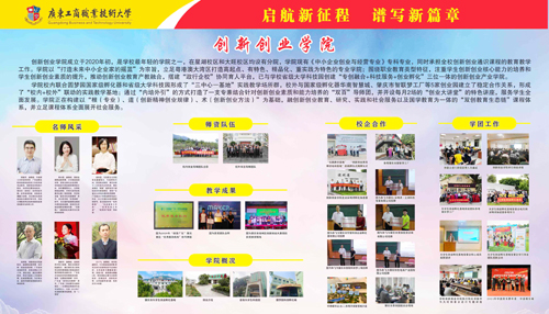 图片展以“启航新征程,谱写新篇章”为主题,共分为学校综合版和各学院两大部分,从学校的发展历程、加强党建和思想政治工作、大力推进职业本科层次试点改革、实施人才强校战略、加强师资队伍建设、师生风采、产教融合、校企合作、科研创新、基础设施建设、社会服务以及学校十四五规划等方面,全方位集中展示了建校以来特别是党的十九大以来,学校及各学院沐浴新时代改革开放的春风,实现升本改大历史性跨越的新发展、新变化、新突破、新气象。